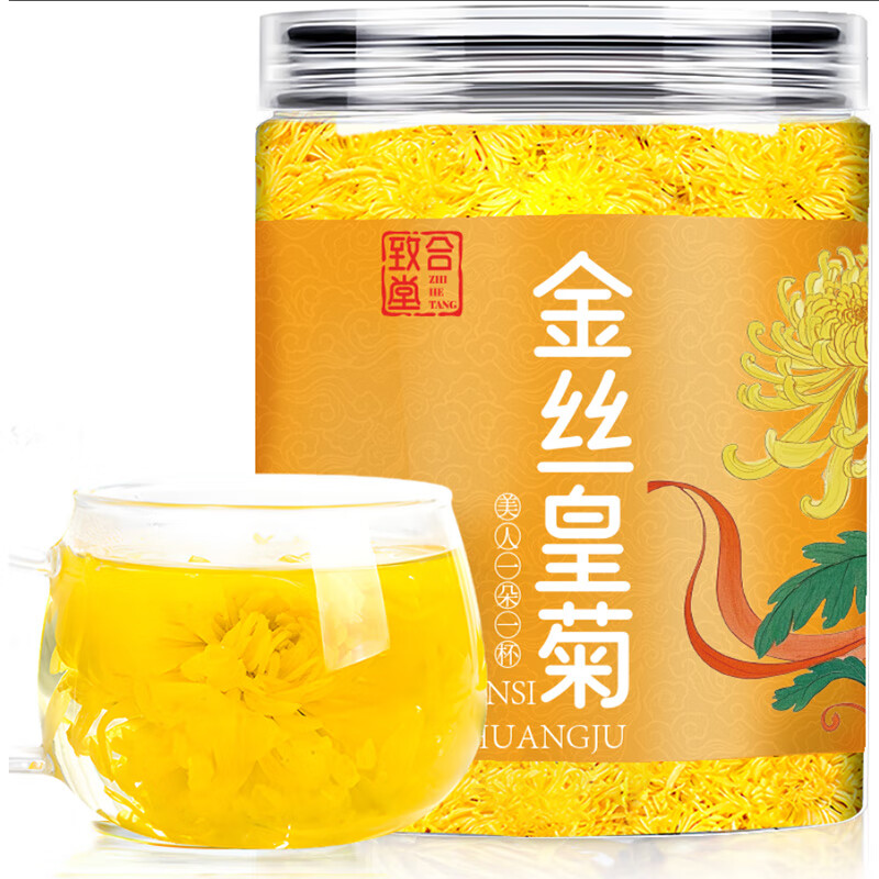 恬和金丝皇菊胎菊黄山贡菊花草茶头采大朵花茶菊花茶一朵一杯 【金丝黄菊25g罐装50-60朵】