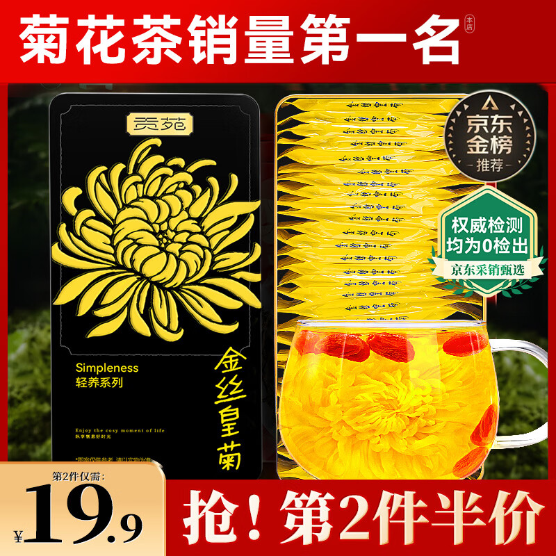 贡苑菊花茶30大朵安徽黄山金丝皇菊特级一杯一朵独立包装熬夜去火胎菊