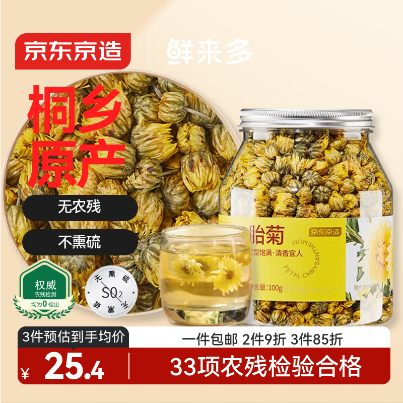 京东京造鲜来多 杭白菊花茶胎菊100g量贩装京东自营桐乡清花草茶养生茶