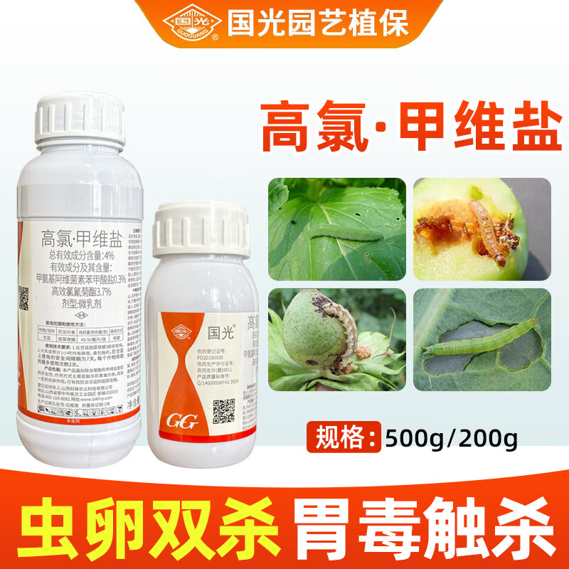 国光4%高氯甲维盐高效氯氟氰菊酯杀虫剂蔬菜甘蓝甜菜夜蛾农药大全 500克