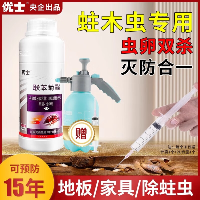 优士家具杀蛀木虫药杀虫剂木地板实木门框杀蛀虫防木头蛀虫白蚁粉蠹虫 15%联苯菊酯500g