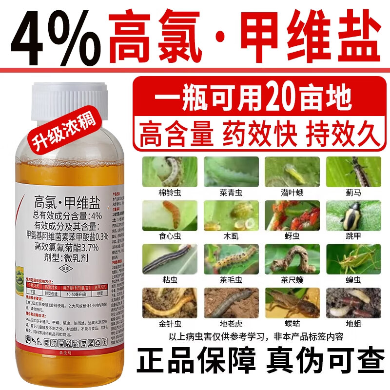 高氯甲维盐杀虫剂正品高效氯氟氰菊酯玉米果树蔬菜钻心虫甜菜夜 50克*1瓶 4%含量