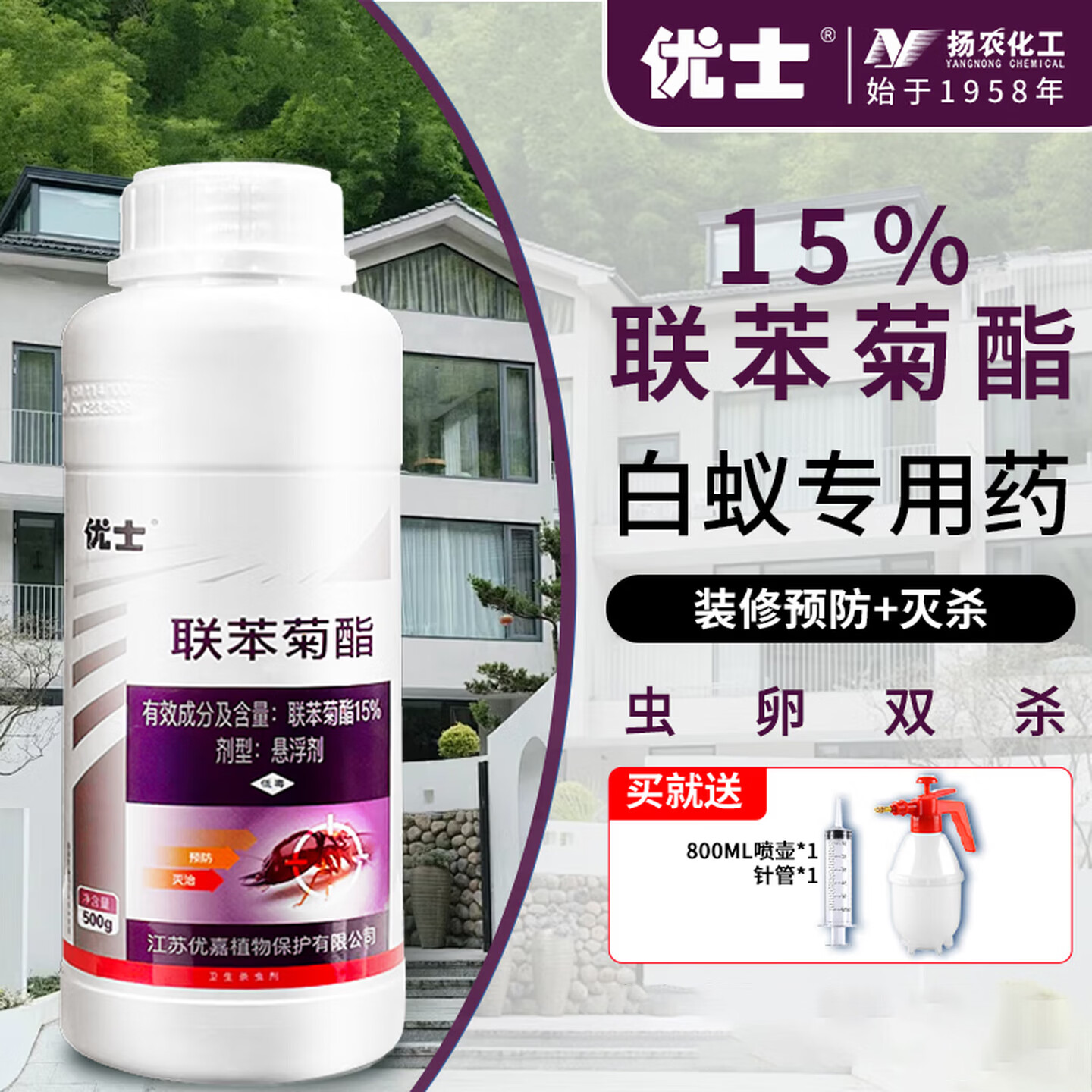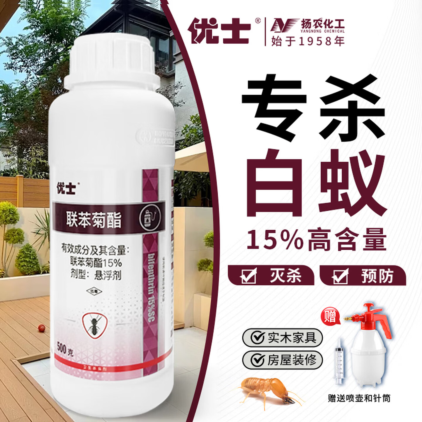 优士15%联苯菊酯白蚁药装修防治专用药专杀家具蛀木虫杀虫剂500g/瓶