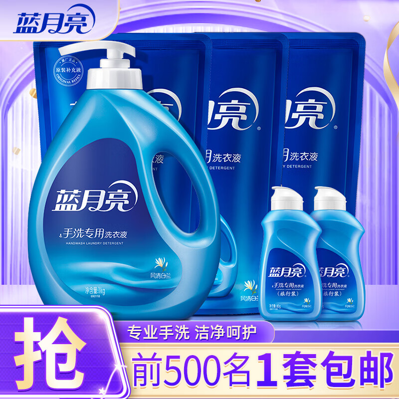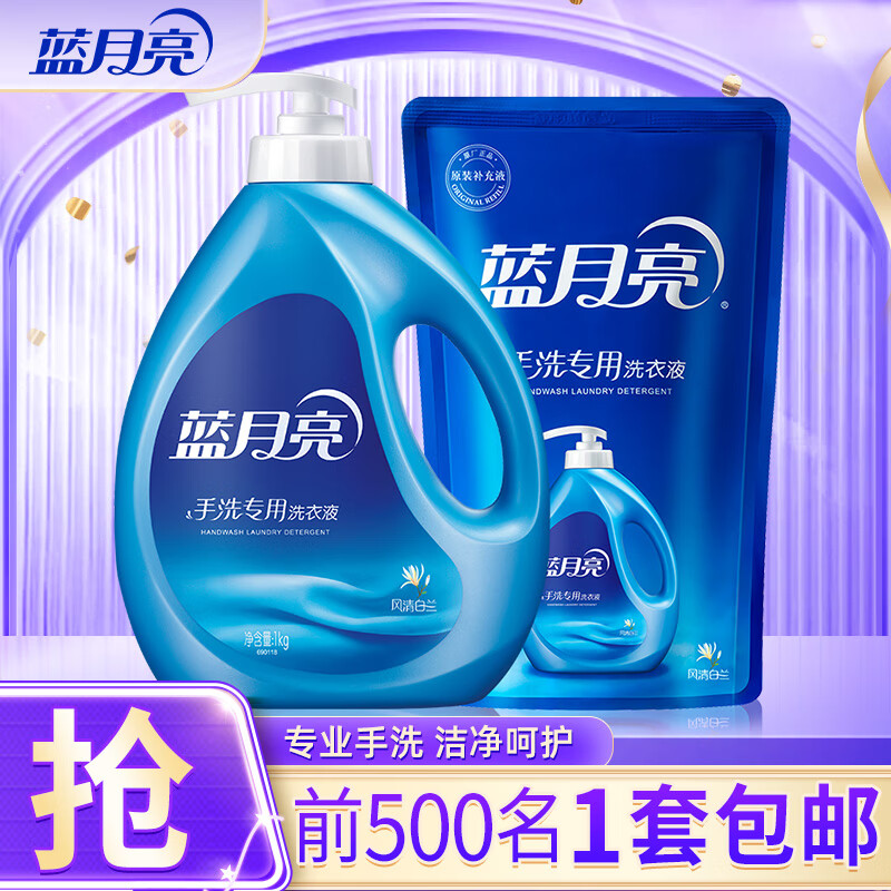 蓝月亮 手洗专用洗衣液 组合装 按压泵头 学生宿舍必备 内衣裤清洁 2斤装:500g瓶+500g袋