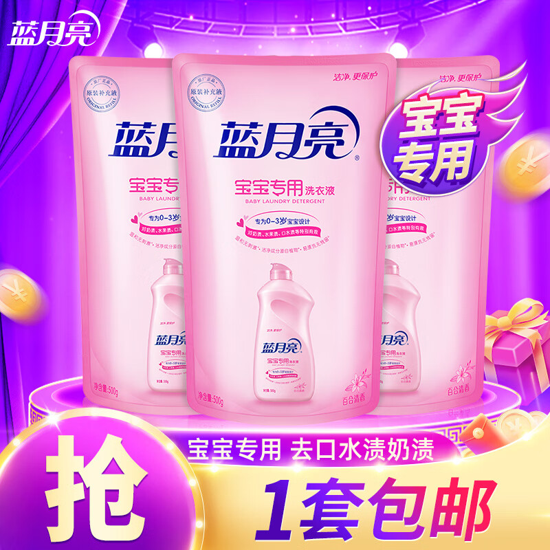 蓝月亮 洗衣液 宝宝婴儿专用 机洗手洗 贴身衣物 去奶渍口水渍 花香型 500g*3袋