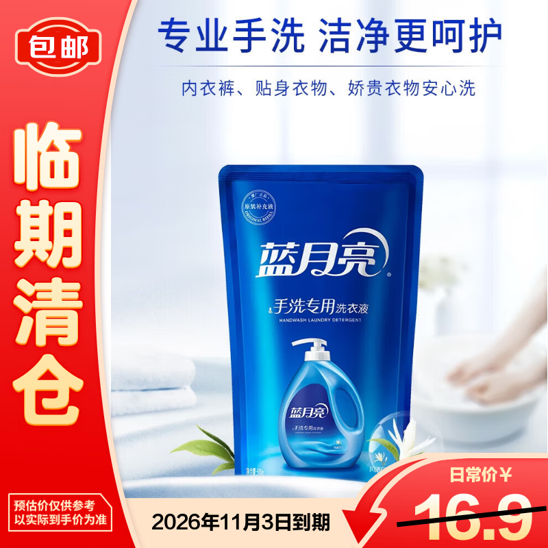 蓝月亮茉莉清香手洗专用洗衣液袋装1kg【临期清仓】