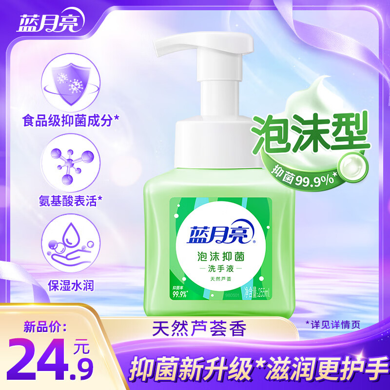 蓝月亮 泡沫抑菌洗手液 天然芦荟香型洗手液泡沫 99.9%抑菌率儿童可用 255ml*1瓶