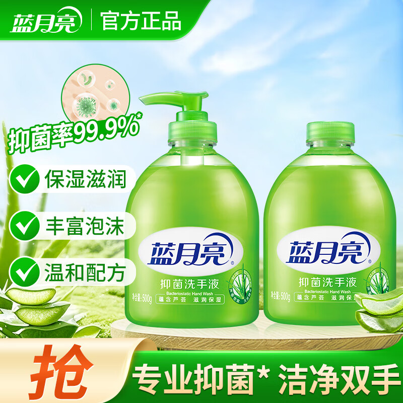 蓝月亮芦荟洗手液 抑菌率99.9% 清洁滋润手护健康 芦荟洗手液500g瓶+500g瓶补