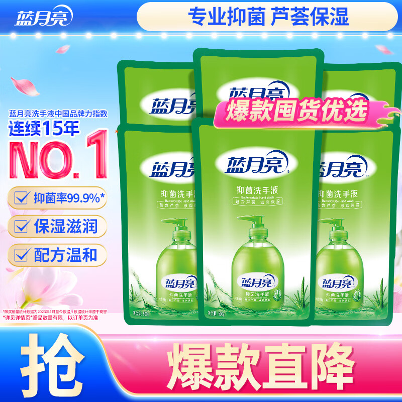 蓝月亮洗手液补充装袋装500g*6 泡沫丰富芦荟抑菌护手保湿替换装