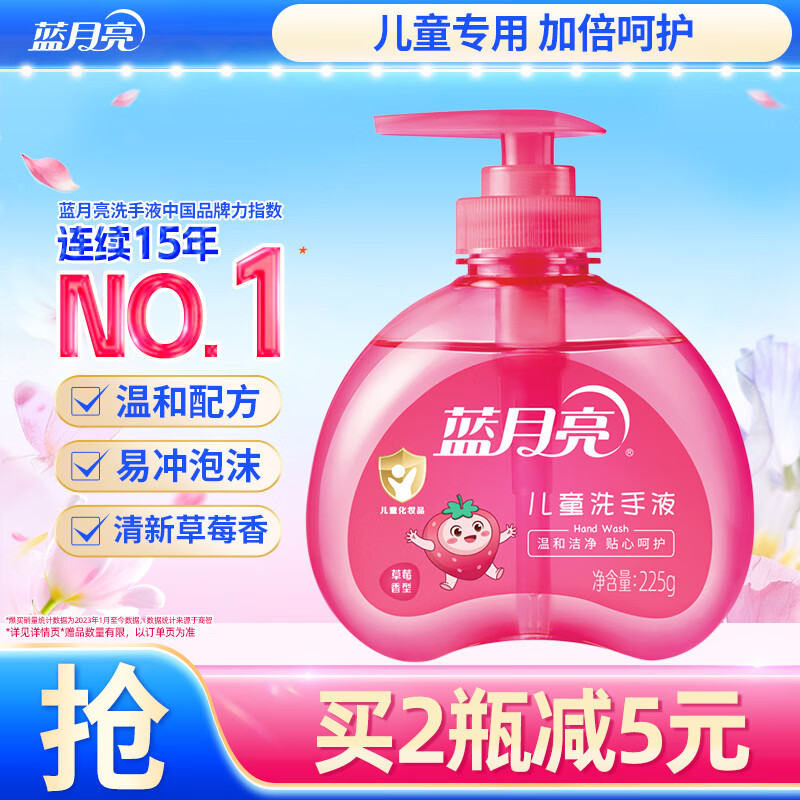 蓝月亮儿童洗手液 225g/瓶(草莓果香) 泡沫丰富温和护手 宝宝专用