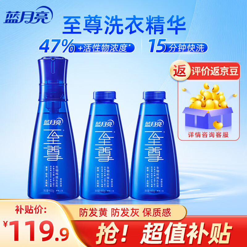 蓝月亮至尊洗衣精华浓缩洗衣液 【店铺会员立减140】660g*3瓶补 适合快洗