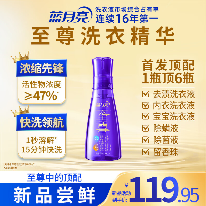 蓝月亮至尊洗衣精华浓缩洗衣液 全效洁净660g*1瓶 洁净去渍留香