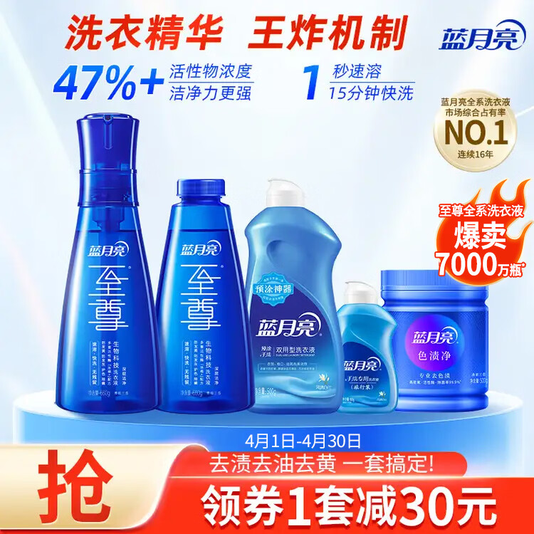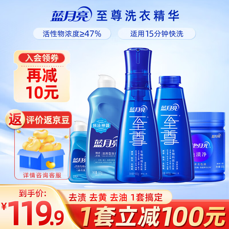 蓝月亮至尊洗衣精华浓缩洗衣液 5件套 除螨快洗 色渍净爆炸盐