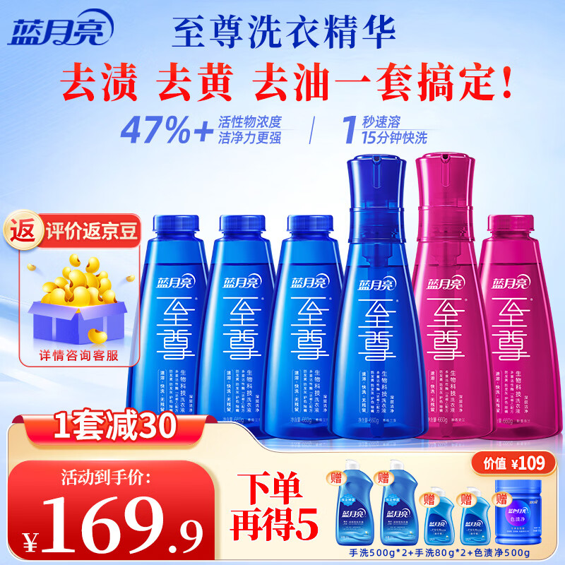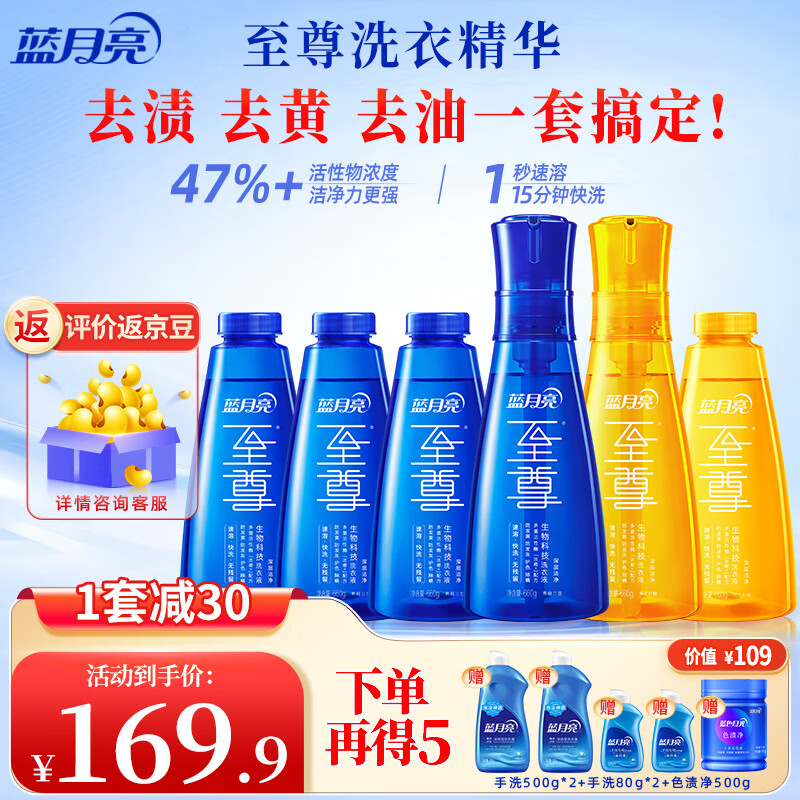 蓝月亮至尊洗衣精华浓缩洗衣液 【浓缩+快洗】5件套|去渍更便捷 适合快洗