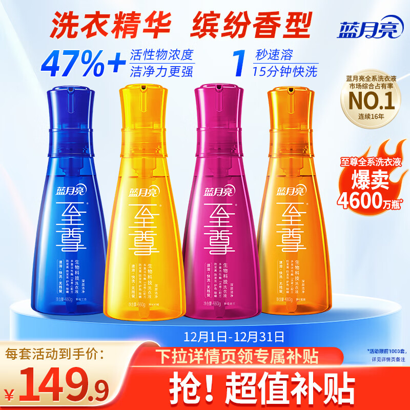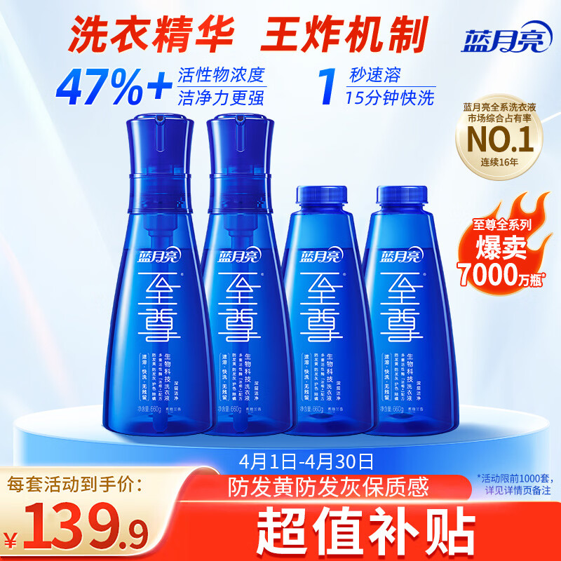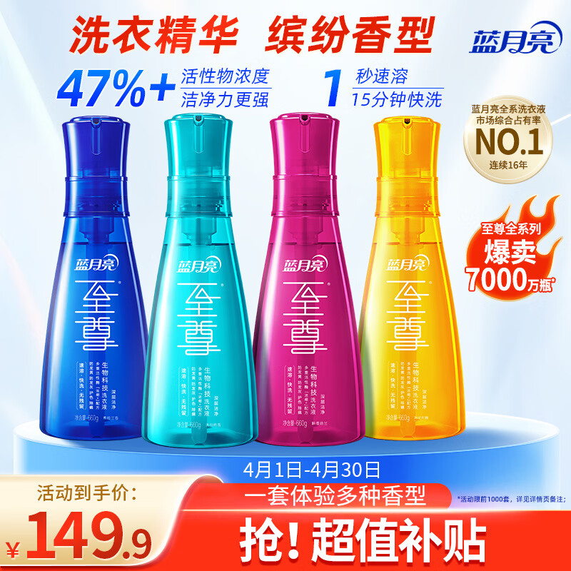 蓝月亮至尊洗衣精华浓缩洗衣液 多香型 660g*4瓶 洁净去污快洗除螨