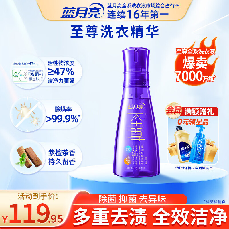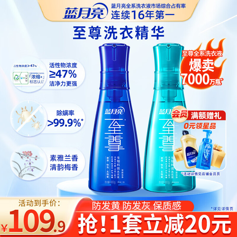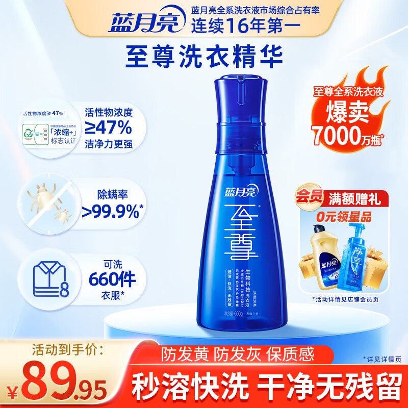 蓝月亮至尊洗衣精华浓缩洗衣液 多香型660g*2瓶 洁净快洗 去污去渍除螨