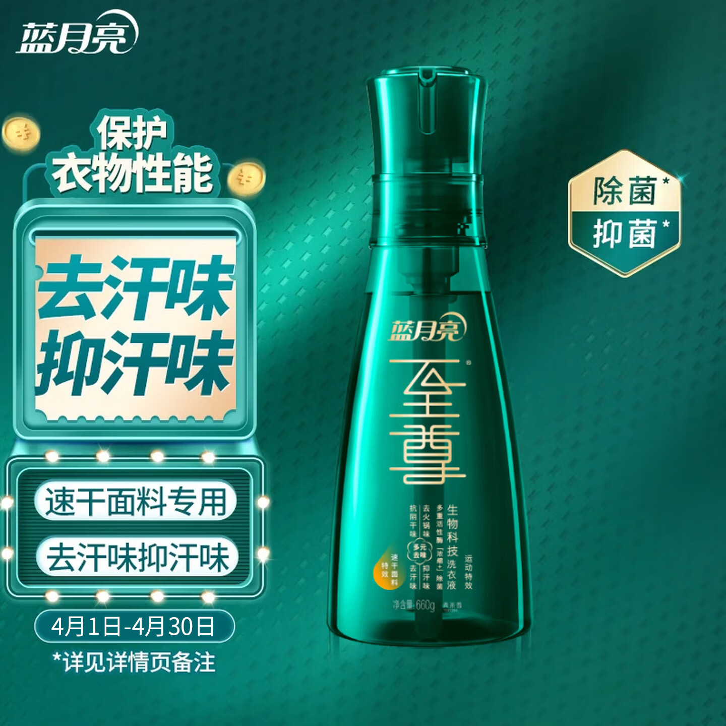 蓝月亮至尊运动型洗衣液660g青茶香 去汗味抑汗味 抑菌率99.9%