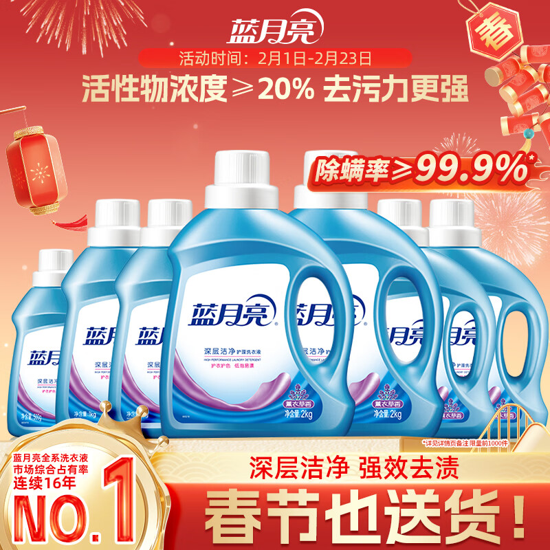 蓝月亮深层洁净洗衣液薰衣草香2kg*2瓶+1kg*4瓶+500g瓶 除螨 强效去渍