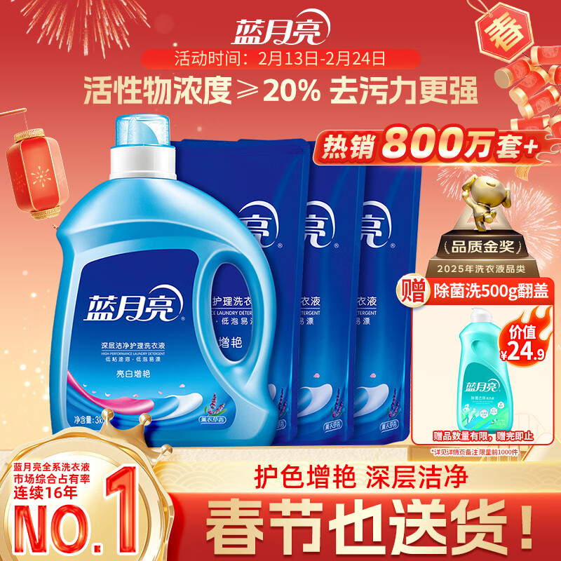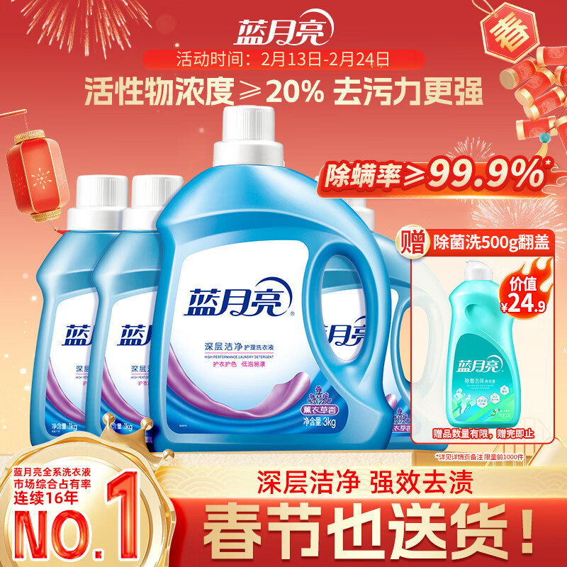 蓝月亮深层洁净洗衣液 薰衣草香 3kg瓶+1kg*3瓶 高效除螨 强效去污