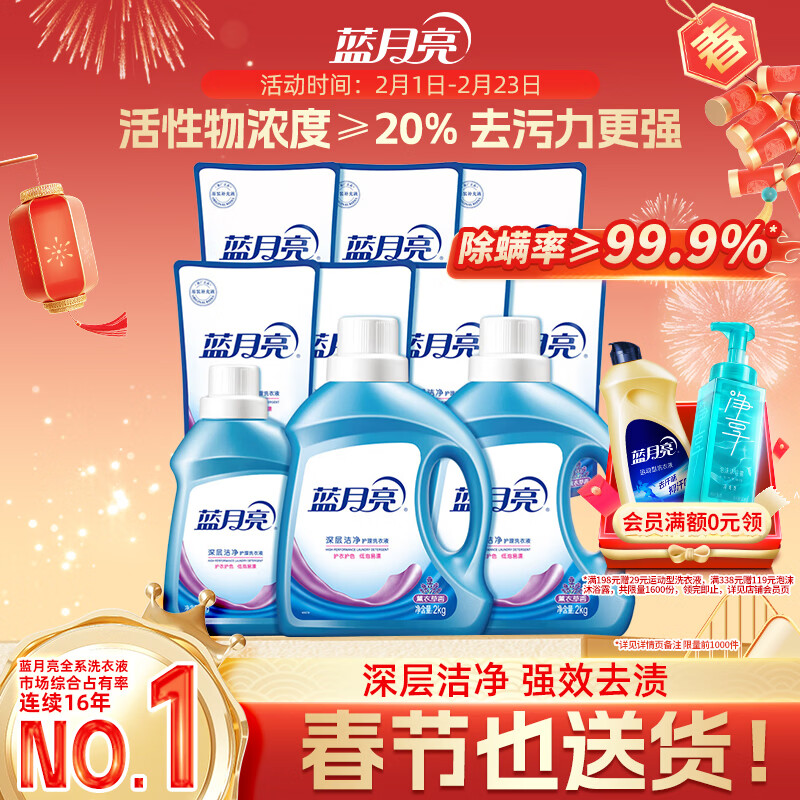 蓝月亮深层洁净洗衣液 薰衣草香 2kg*2+1kg+500g*7袋 高效除螨 强效去渍