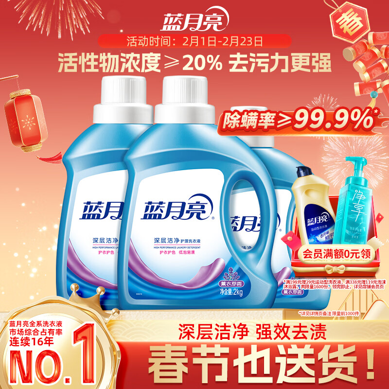 蓝月亮 深层洁净洗衣液 薰衣草香 2kg瓶+1kg*3瓶 强效除螨 高效去污