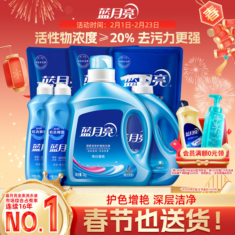 蓝月亮洗衣液组合香型2kg瓶+1kg*3袋+500g*2瓶+1kg瓶 留香 机洗手洗可用