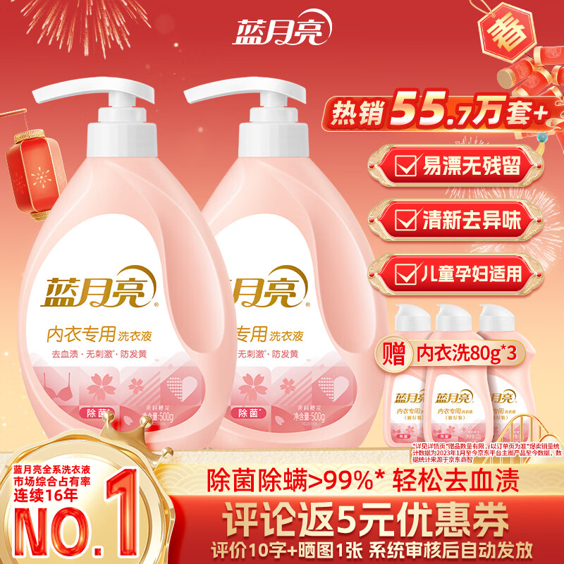 蓝月亮内衣专用洗衣液 樱花香500g*2瓶 除菌除螨>99% 轻松去血渍