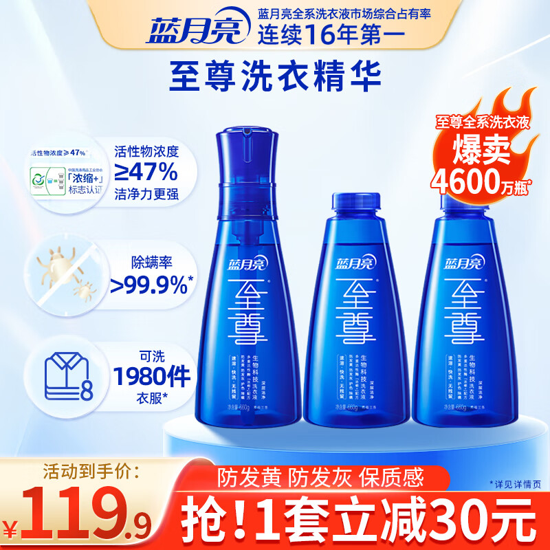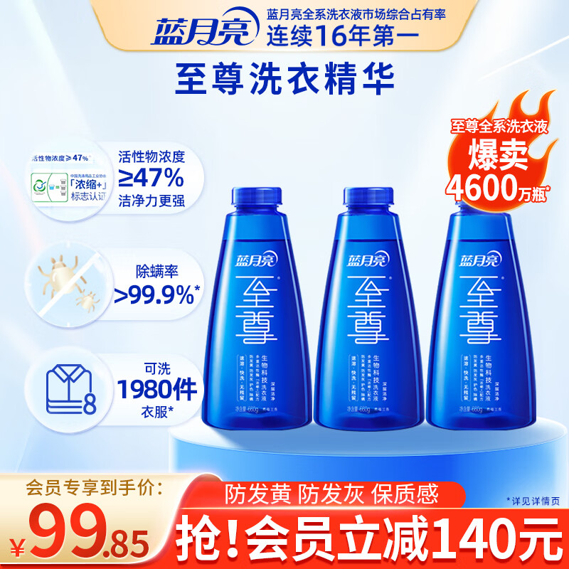 蓝月亮至尊洗衣精华浓缩洗衣液660g*3瓶 多香型 洁净去污去渍除螨