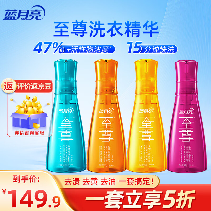 蓝月亮至尊洗衣精华浓缩洗衣液 47%+活性物浓度 秒溶快洗 【生物科技】660g*4瓶|多效去渍