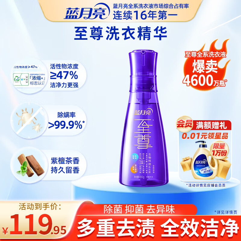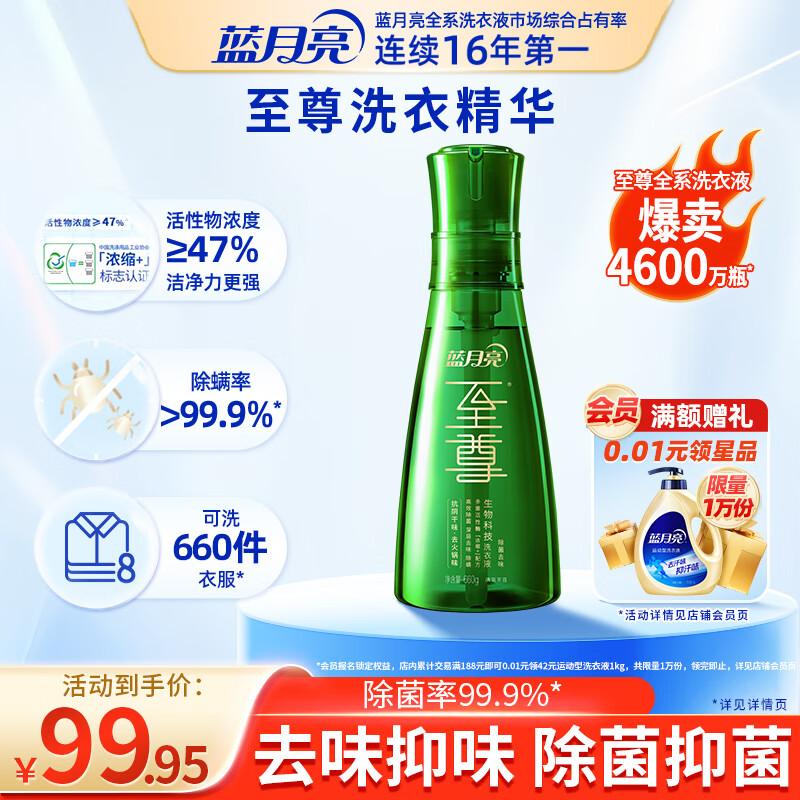 蓝月亮至尊洗衣精华浓缩洗衣液 除菌去味660g快洗去油去渍除螨护色