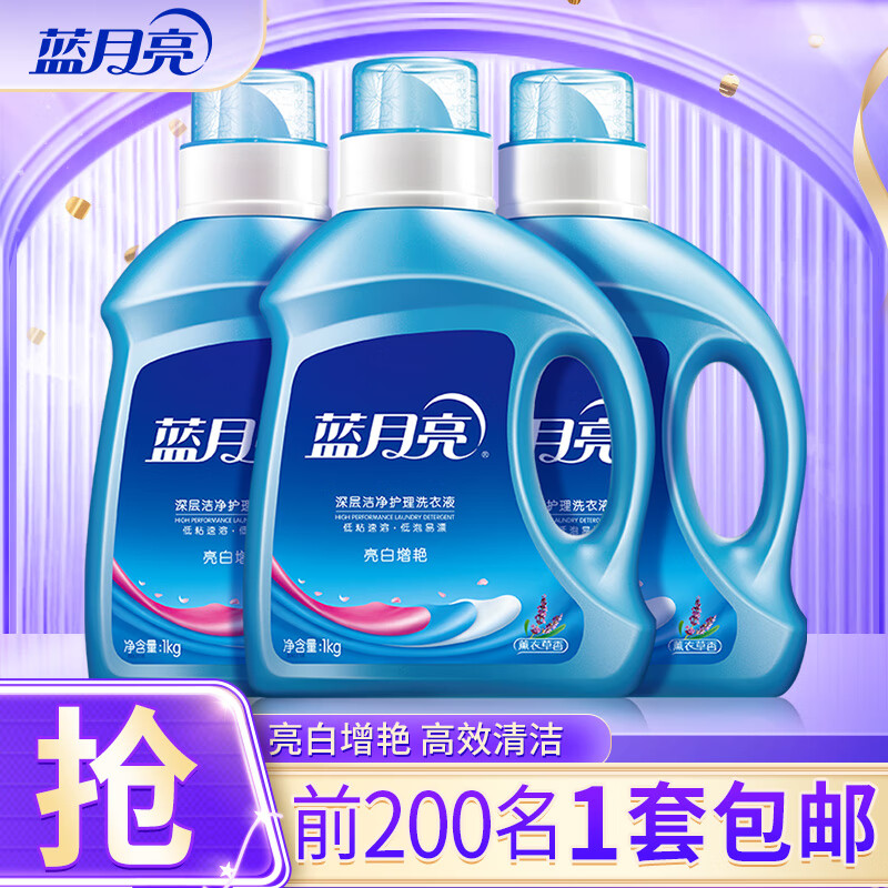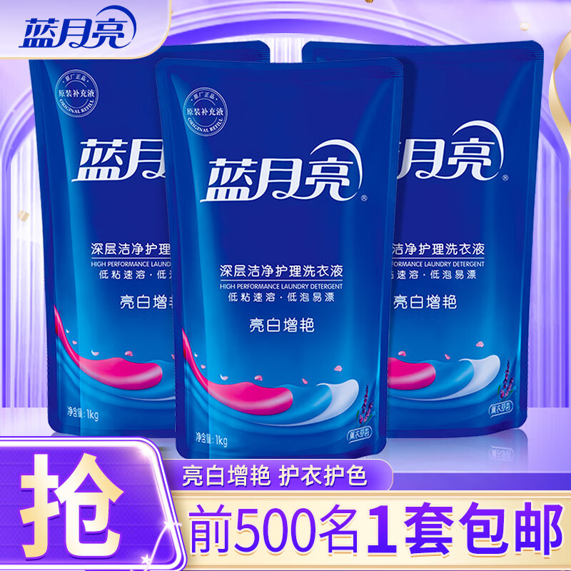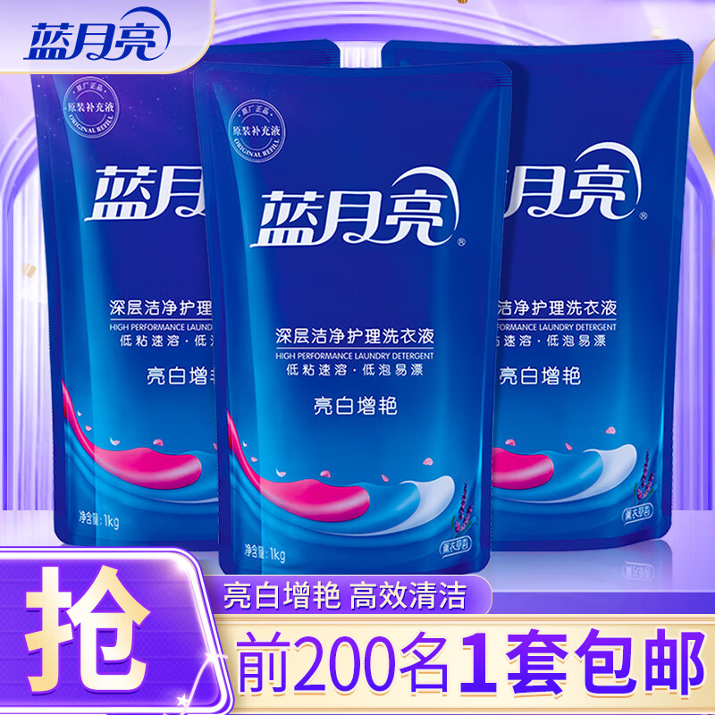 蓝月亮 洗衣液 薰衣草香/自然清香不同香型可选 袋装补充装 原液补充 【亮白增艳】1kg袋*3|薰衣草香