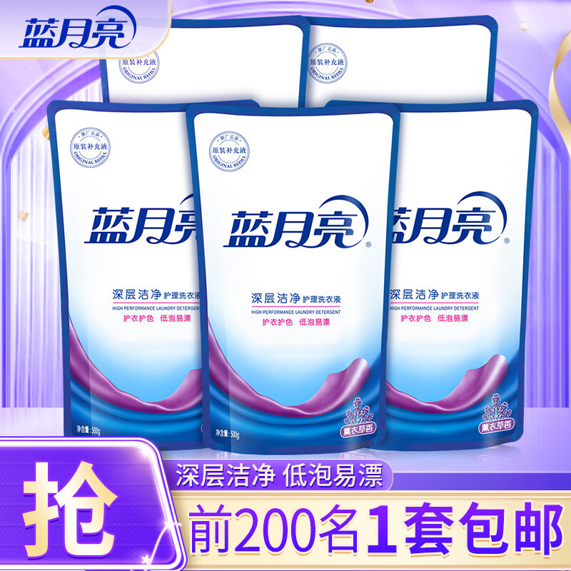 蓝月亮 洗衣液 薰衣草香/自然清香不同香型可选 袋装补充装 原液补充 【深层洁净】500g袋*5|薰衣草香