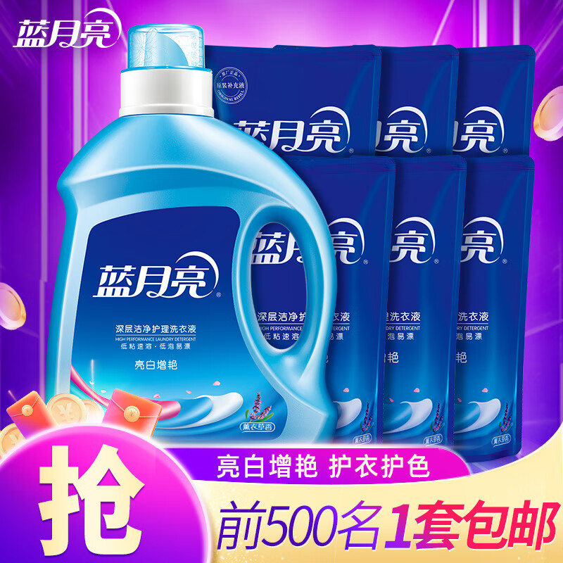 蓝月亮洗衣液薰衣草自然香家用实惠装机洗专用洗衣护理袋装补充装 1斤装【亮白薰衣草500g*1袋】