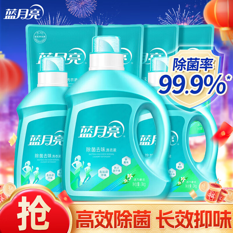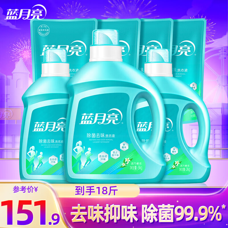 蓝月亮 除菌去味洗衣液 橙花香 去味抑味 深层洁净 去污留香 袋装补充 【18斤】3kg+2kg*2瓶+500g*4袋