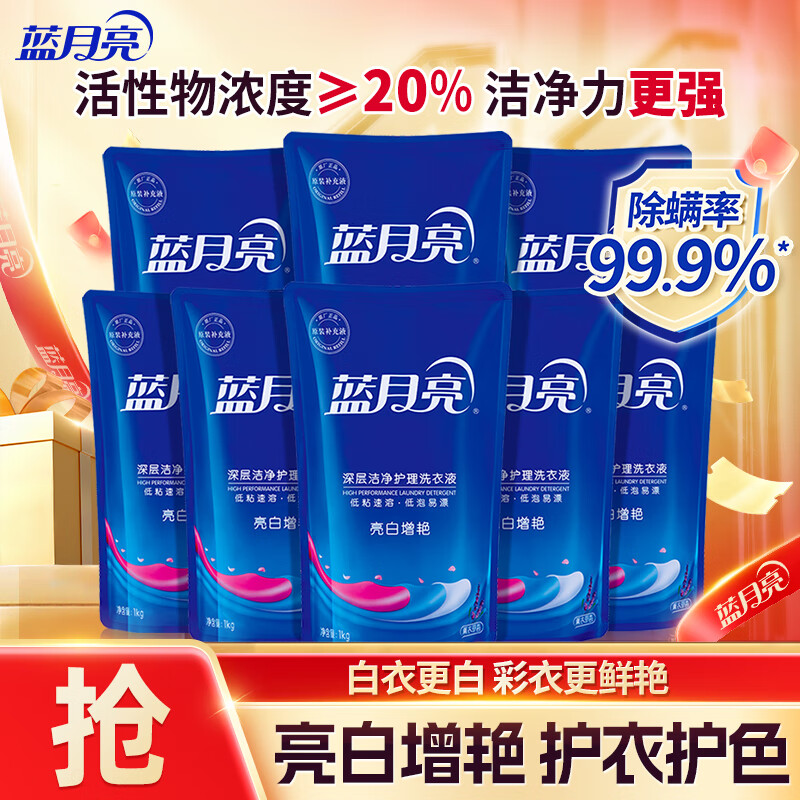 蓝月亮 洗衣液 薰衣草香/自然清香不同香型可选 袋装补充装 原液补充 【亮白增艳】1kg袋*8|薰衣草香