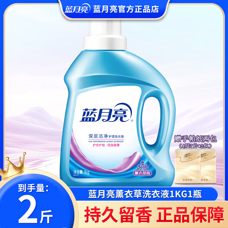 蓝月亮洗衣液亮白增艳瓶装袋装补充液薰衣草香深层洁净去污去渍易漂洗 深层洁净2斤中瓶+手帕纸