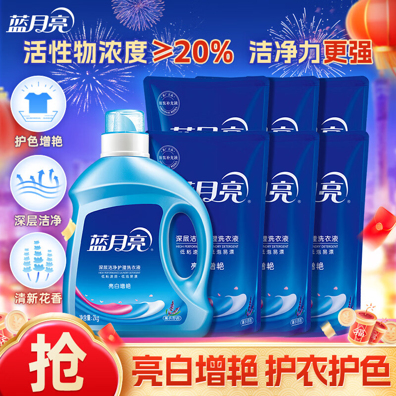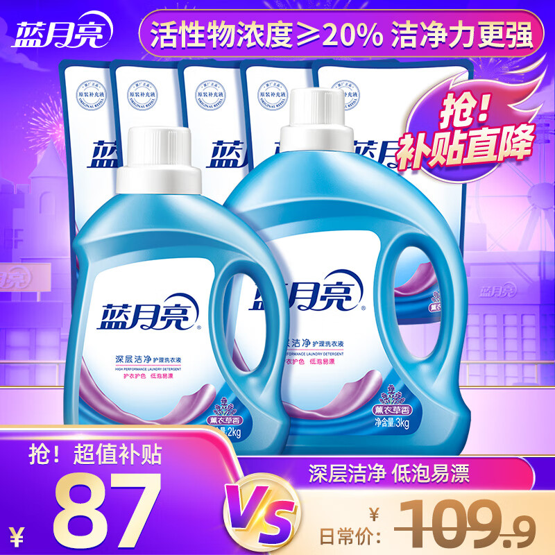 蓝月亮洗衣液深层洁净套装 薰衣草香 机洗手洗可用 瓶装+袋装补充 【洁净15斤】3kg+2kg+袋装500g*5