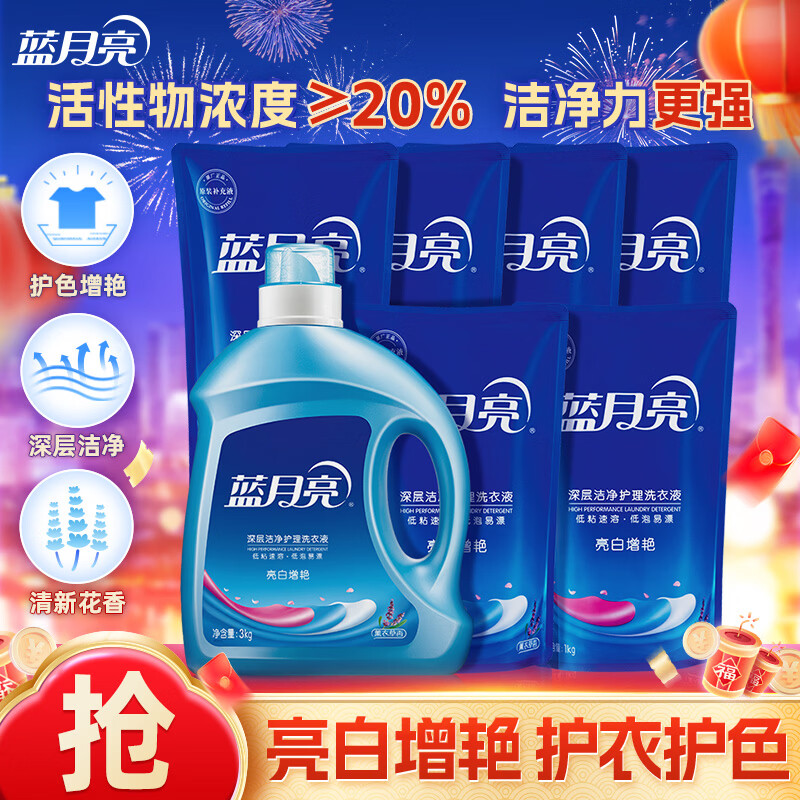 蓝月亮 洗衣液机洗套装瓶袋装 薰衣草香 亮白增艳 6斤:亮白1kg*3瓶