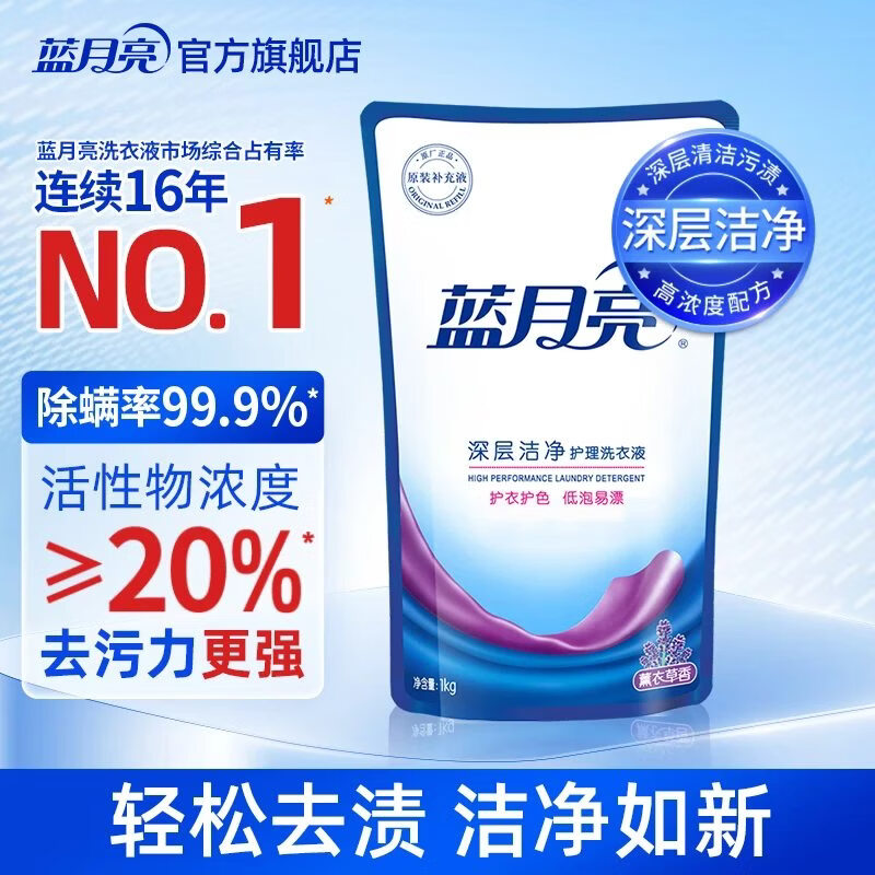 蓝月亮 深层洁净洗衣液 薰衣草香 1kg袋装 补充装 高效除螨 强效去污