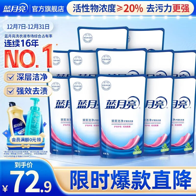 蓝月亮深层洁净洗衣液袋装 自然清香 500g*12 补充装 高效除螨 强效去污