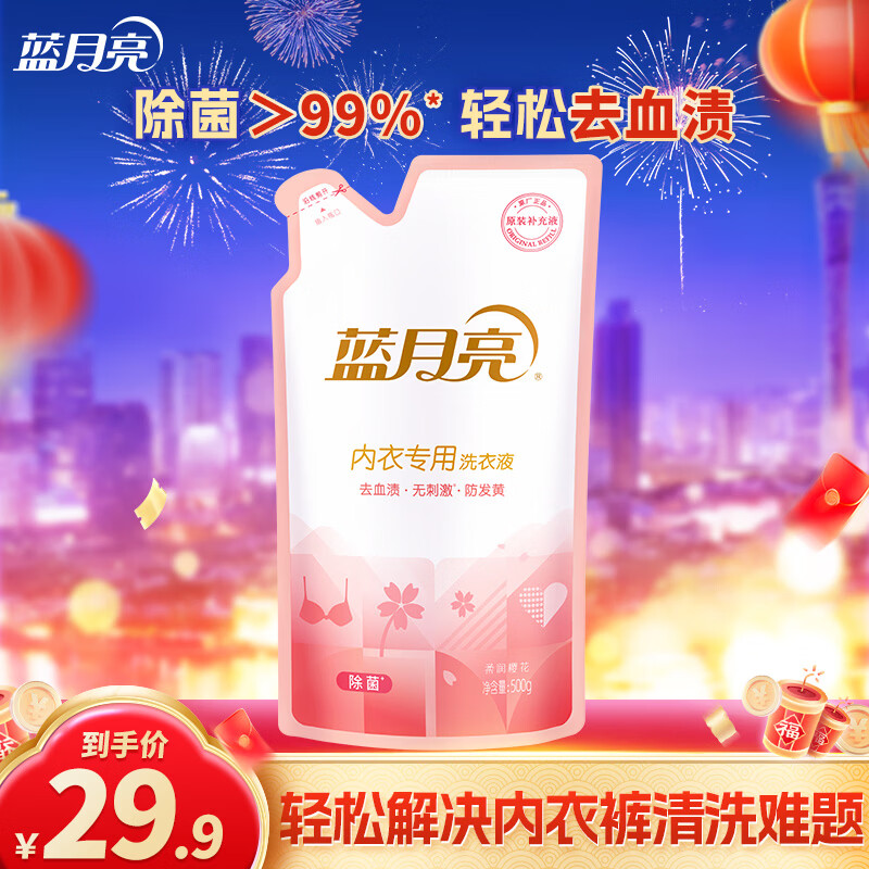蓝月亮内衣内裤洗衣液男女士 防发黄去血渍 孕妇学生可用 除菌>99% 【袋装新品】500g*1