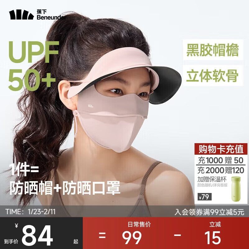 蕉下(beneunder)脸基尼女帽檐全脸防晒面罩防晒口罩防紫外线