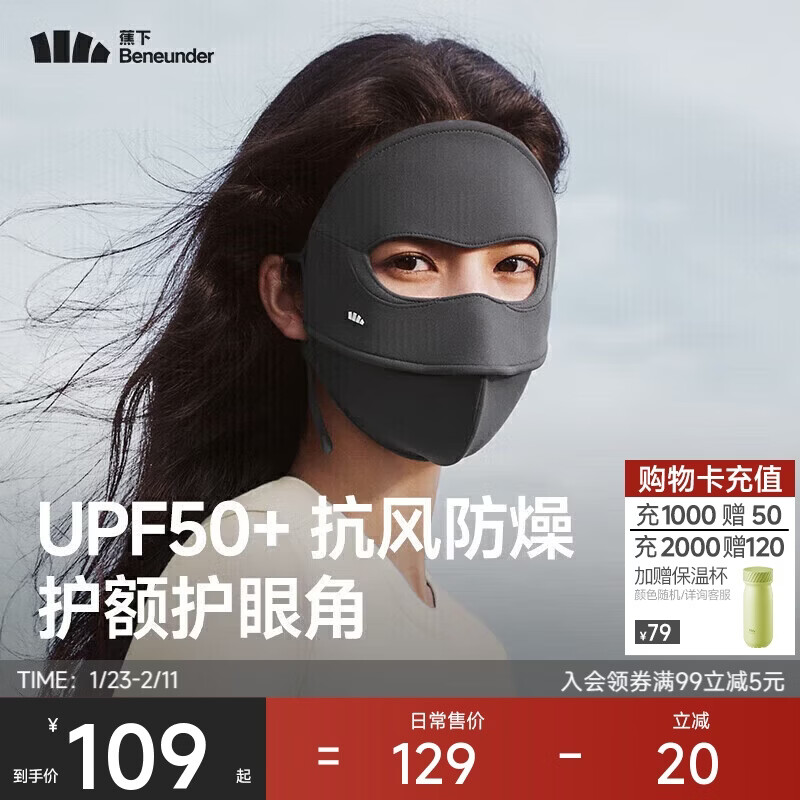 蕉下(beneunder)防暴晒防晒口罩女防晒遮阳面罩全脸防紫外线深花灰MP831