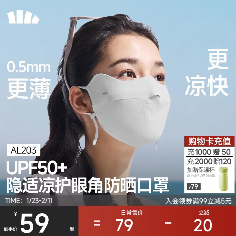 蕉下(beneunder)防晒口罩女防晒面罩防紫外线高颜值薄款脸基尼高山灰