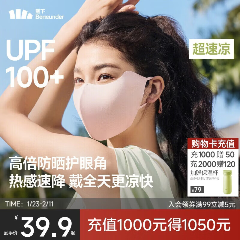蕉下(beneunder)防晒口罩女防晒面罩防紫外线高颜值薄款脸基尼谧黛粉