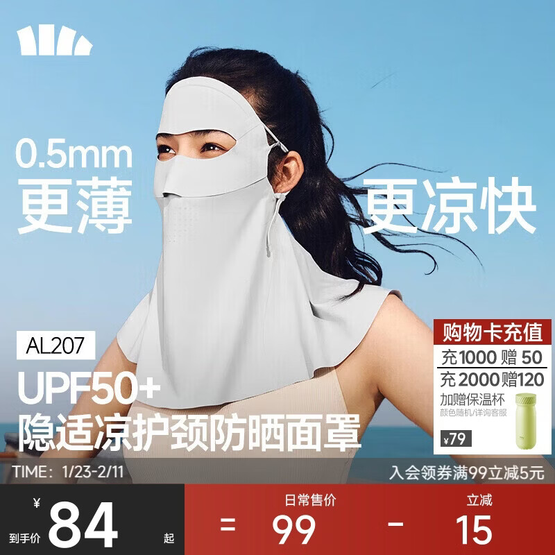 蕉下(beneunder)防晒口罩骑行护脸面罩脸基尼女医美防紫外线全脸防晒面罩高颜值灰
