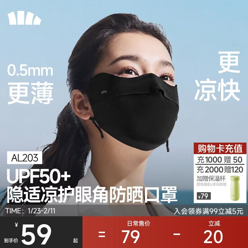 蕉下(beneunder)立体防晒口罩女全脸防晒面罩防紫外线口罩脸基尼高颜值漫暮黑