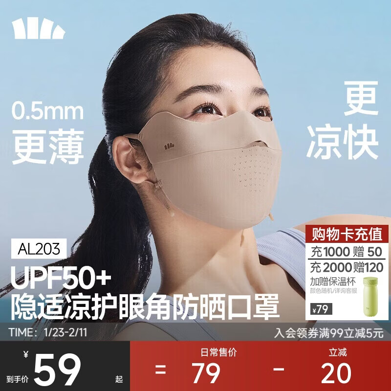 蕉下(beneunder)面膜防晒口罩骑行口罩女高颜值轻薄无痕防晒面罩护脸基尼乌杏棕