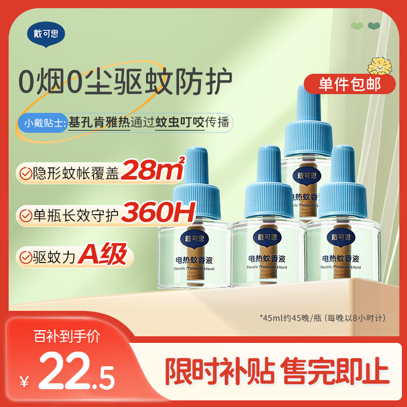 戴·可·思(Dexter)基孔肯雅热电热蚊香液驱蚊液套装电热蚊香液补充液120晚4瓶装