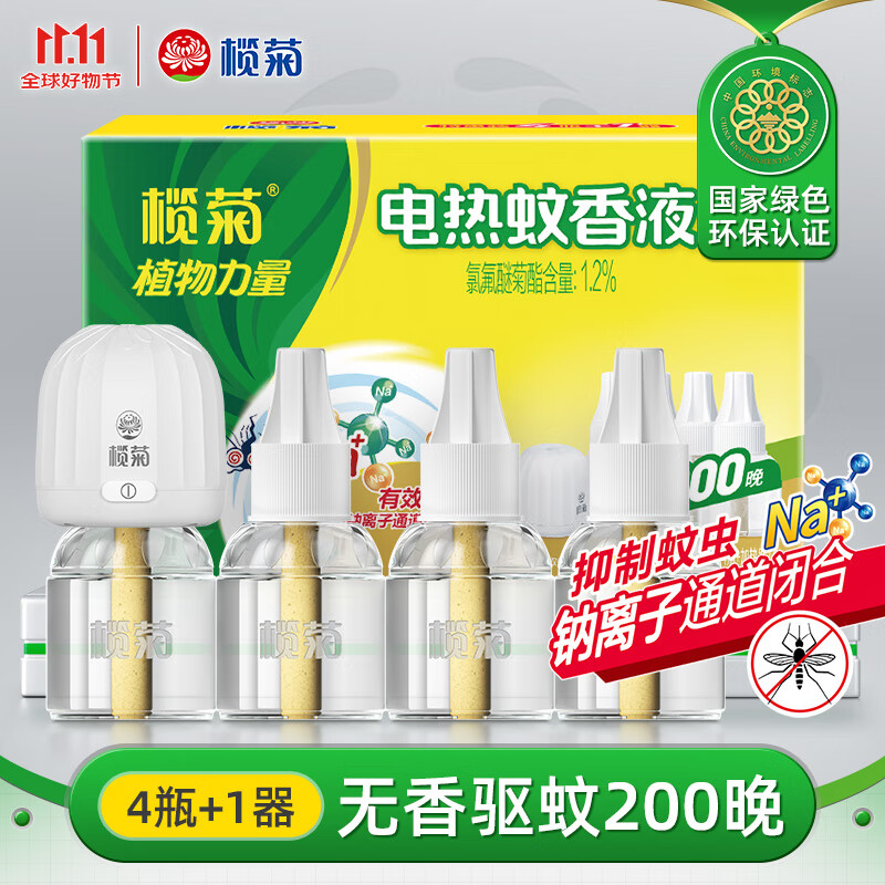 榄菊基孔肯雅热电蚊香液4瓶+1器 无香型电热蚊香液电蚊香防蚊驱蚊液